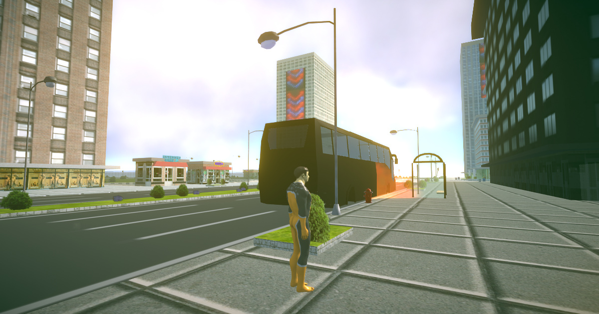 Become a superhero and save the city on the enemy.In the game, you can break down buildings,swim,shoot a laser and many more. *WASD*=walk/control car*q*=grab hook*Left mouse*=punch*Right mouse*=laser shoot*space*=jump*esc*=main menu*e*=enter /exit vehicle*c*=camera switch*g*=reset car*l*=police lights