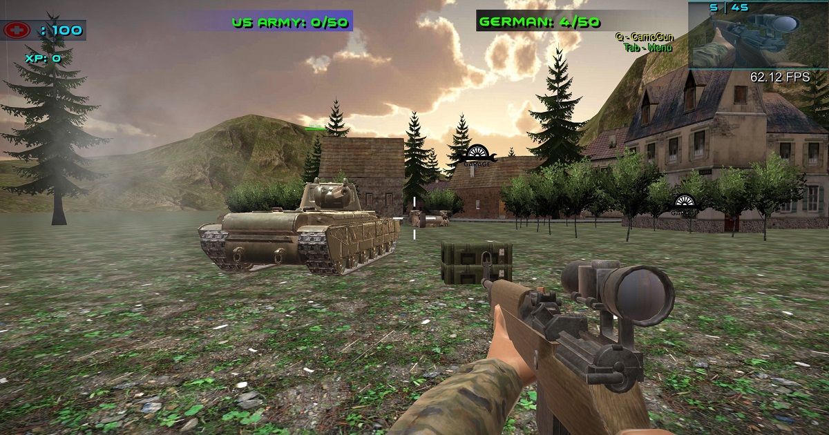 In this awesome game, you will have to shoot all the enemies via tanks, Planes, or just normal guns like a machine, snipers, and let us not forget about rocket launchers! *wasd* = drive tank, helicoper, cars and character*Mouse* = look around, shooting, change gun on scroll*Tab* = menu*E* = enter exit from tank or airstrike